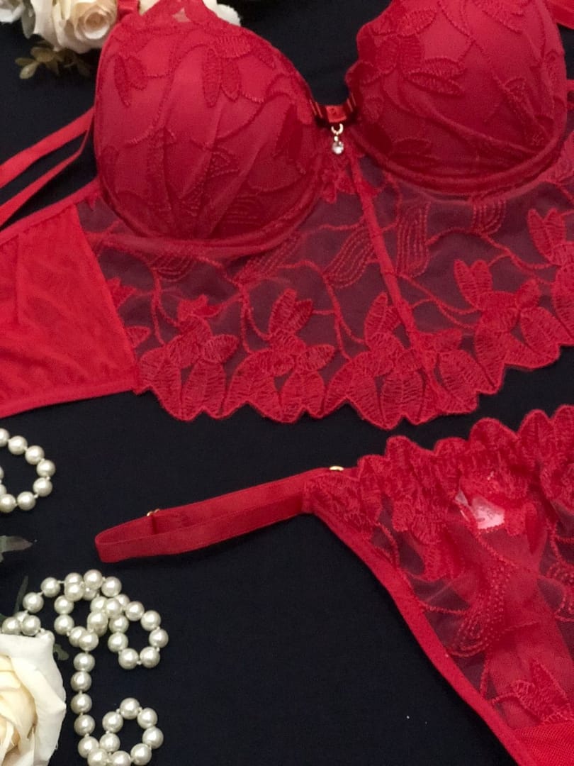 Sua embalagem contem: 01 Conjunto Sexy Cropped e Bordado E Calcinha Fio.